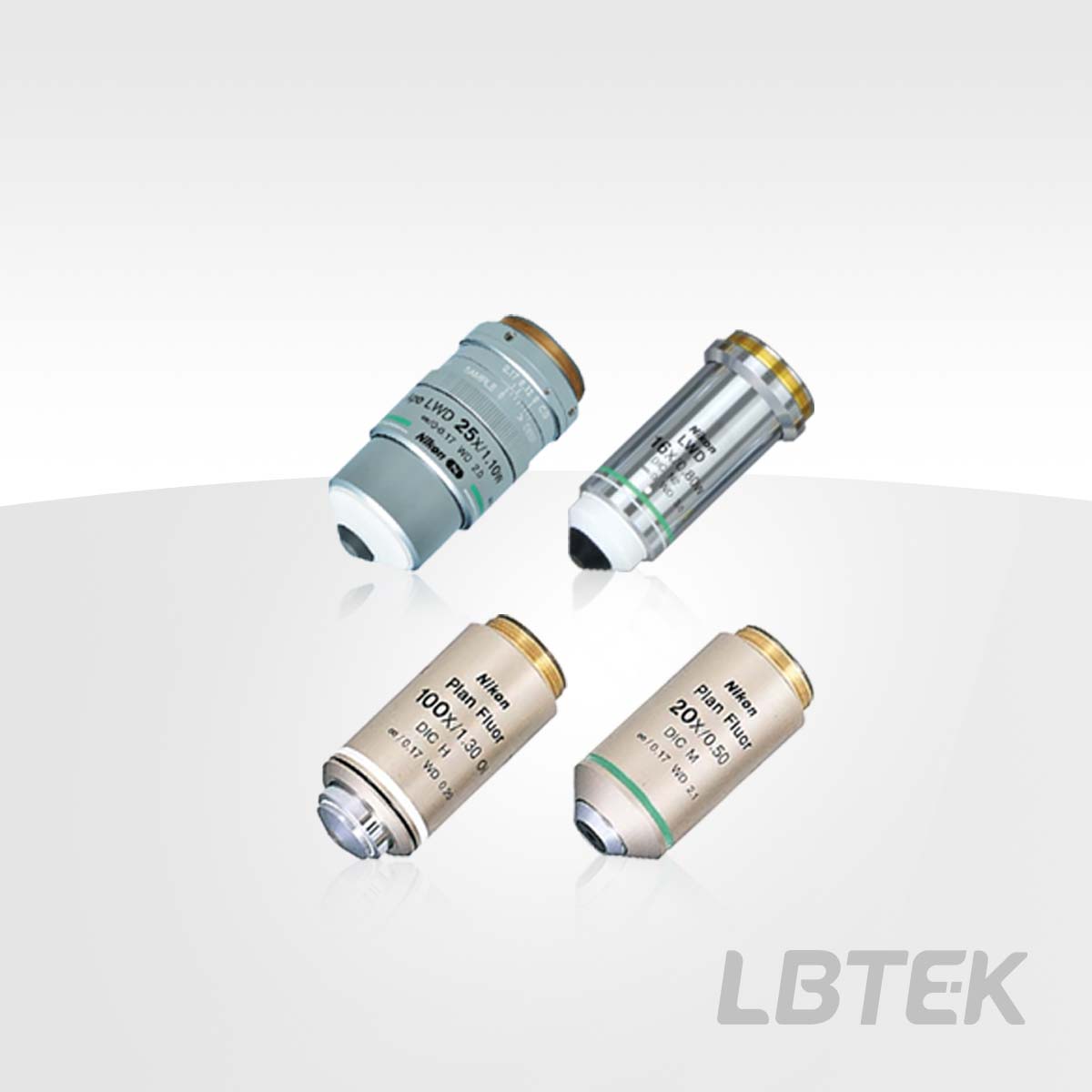 Dry objectives, water immersion objectives, and oil immersion objectives available