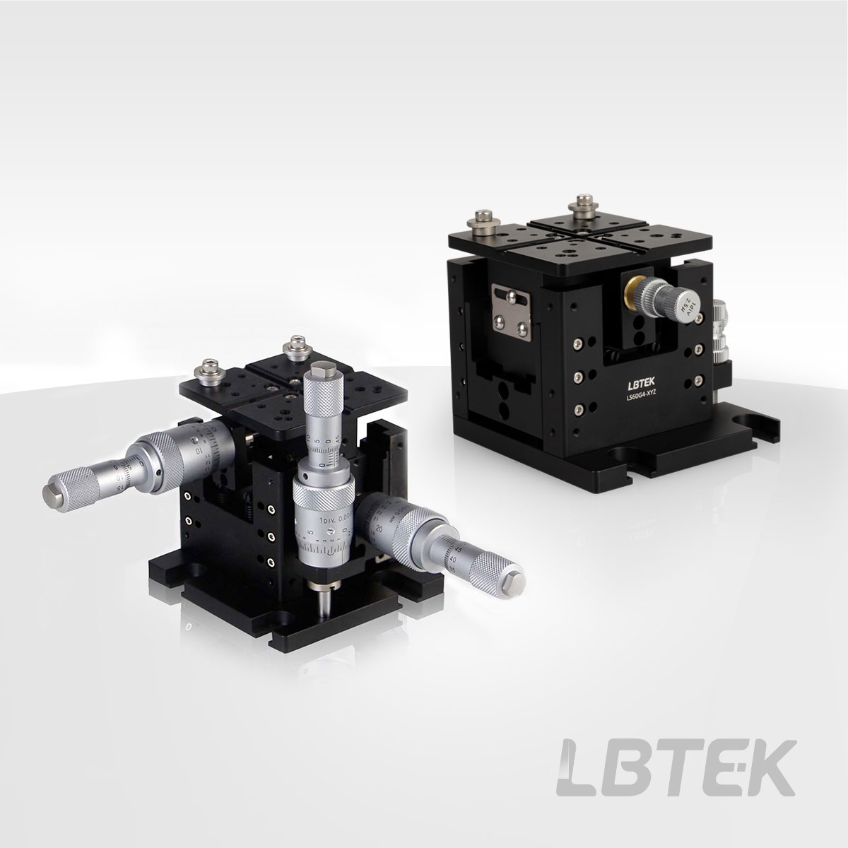 Linear ball-bearing stages with Gothic arch guides and 4-point ball contact rolling system, supporting high load capacity and high positioning accuracy;