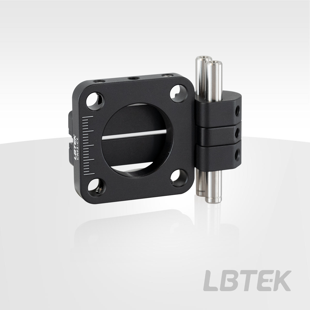The 1 mm spaced graduations on the coaxial plate can assist in aligning optical components