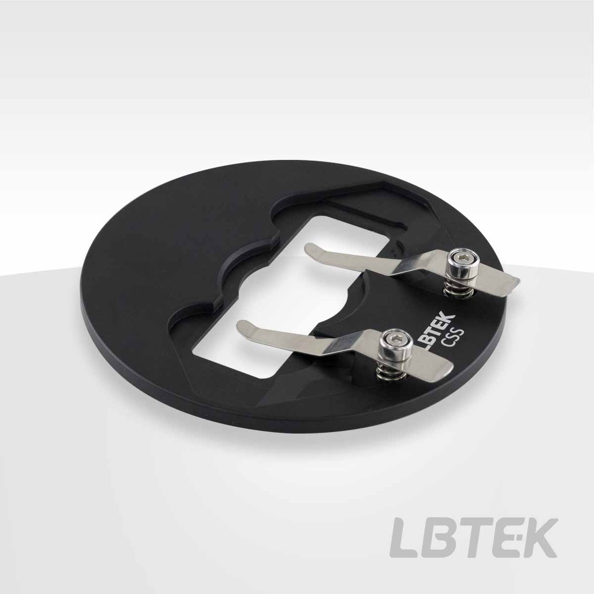 The LBTEK Circular Clamping Arm is used for mounting circular slide holders. During use, place the CSS into the Ø110 mm step, then tighten the four clamping plates to secure it. The bottom features a 40 mm dovetail rail, compatible with Ø38 mm dovetail rods. Additionally, the bottom is equipped with M6 threaded holes spaced 25 mm apart, allowing for the installation of other experimental components.