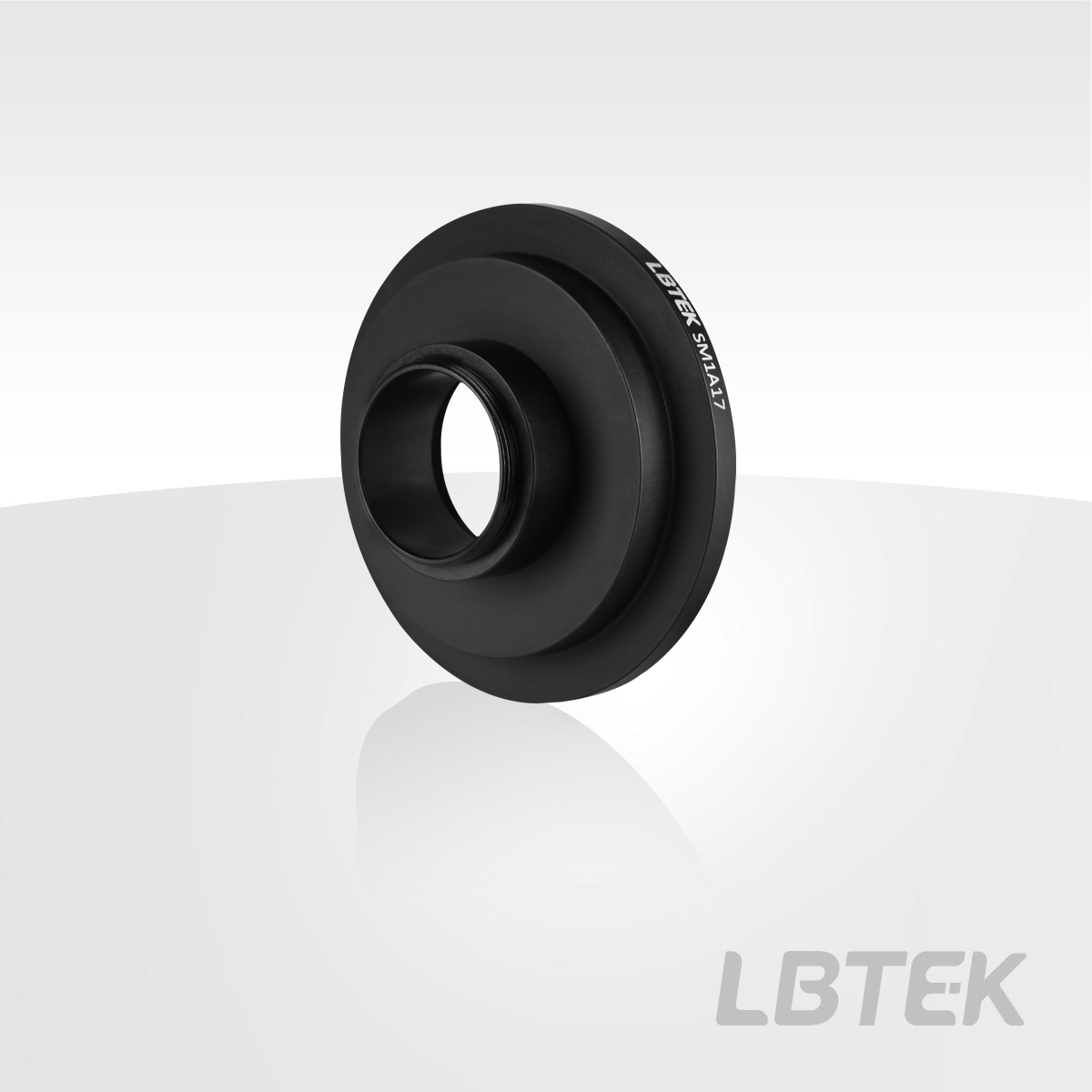 The LBTEK light box port adapter is compatible with Leica DMI microscope light box ports and our SM1 lens sleeves. This adapter features a robust structure to ensure long-term, precise alignment, and its surface is treated with black anodization to effectively suppress stray light reflections. It also includes an internal thread to external thread adapter SM1-8C, allowing flexible adaptation to SM1 internal and external threaded light sources, facilitating efficient and uniform microscopic illumination connections.
