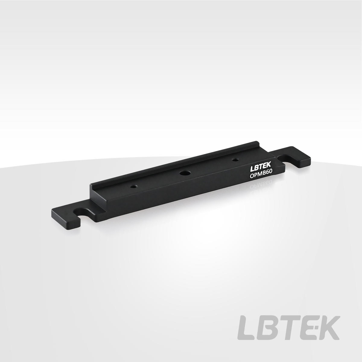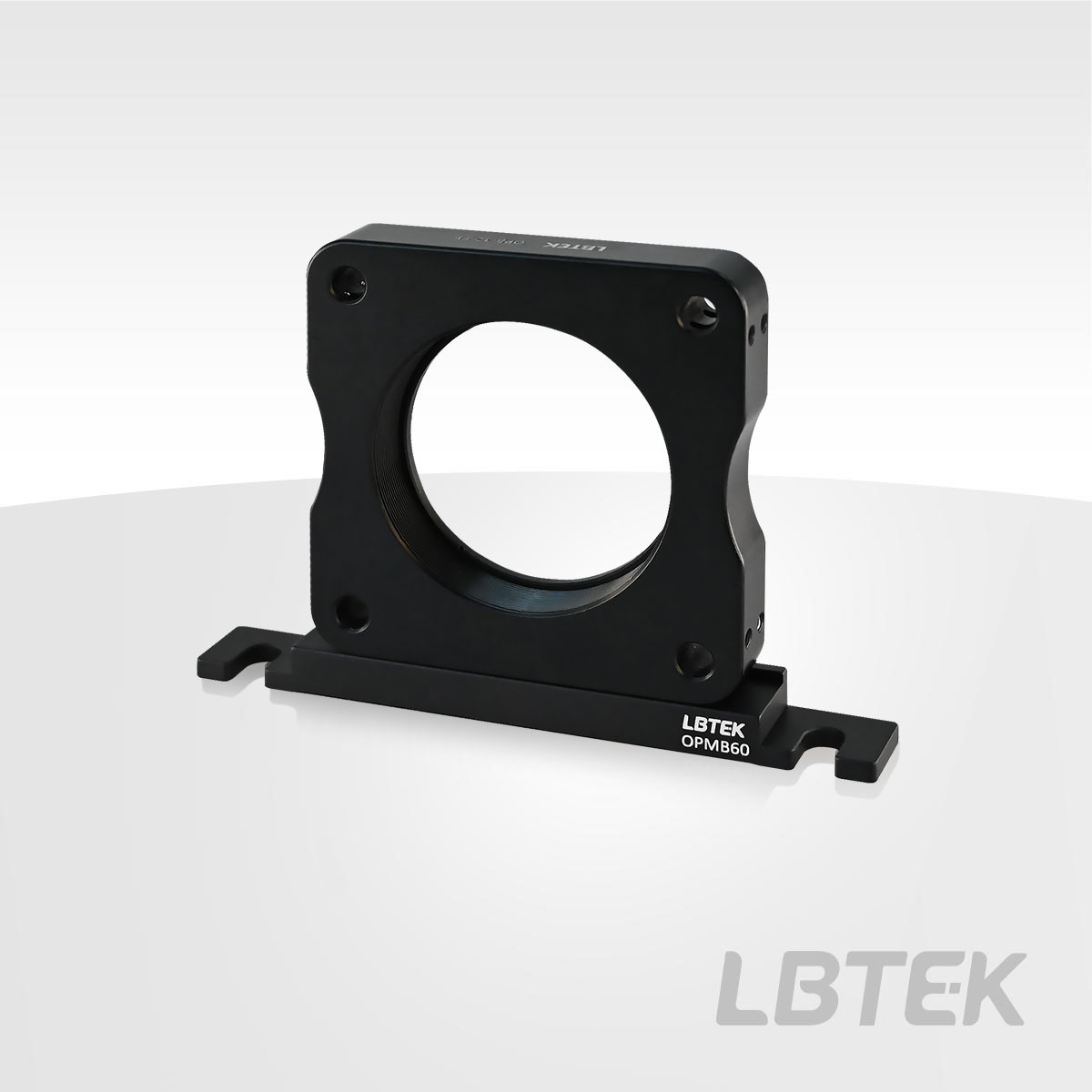The LBTEK 60 mm coaxial mounting base allows for the installation of a 60 mm coaxial plate onto an optical table or breadboard through two M6 slotted holes. The OPMB60 features an M4 countersunk hole at the bottom, which can be connected to the OPB-12.5B using the included M4*12 cylindrical head hex socket screw. Each base is equipped with a raised edge to prevent the coaxial plate from rotating under force.