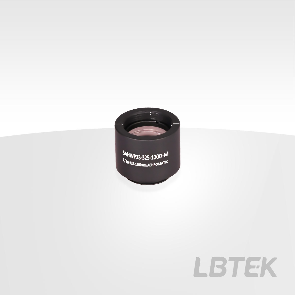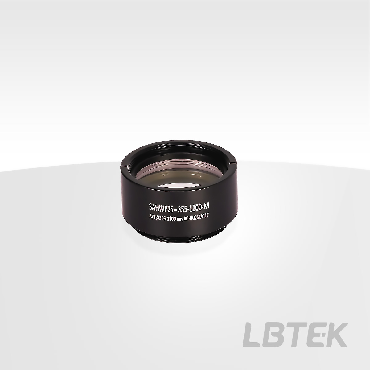 LBTEK's Super Achromatic Half-Wave Plate, with a clear aperture of Ø21.5 mm, is constructed by bonding three quartz wave plates and three MgF2 wave plates. By controlling their relative angles, it achieves an ultra-broadband achromatic effect. Standard products are available for working wavelengths of 325-1200 nm, 355-1200 nm, and 600-2200 nm, all mounted in standard SM1 lens tubes. The surface is engraved with product model, retardation, design wavelength, and fast axis direction for easy identification and use. The Ø21.5 mm Super Achromatic Half-Wave Plate for 325-1200 nm offers a broader bandwidth, making it more suitable for broadband small spot applications; the Ø21.5 mm Super Achromatic Half-Wave Plate for 355-1200 nm provides better wavefront quality, making it more suitable for large spot applications.