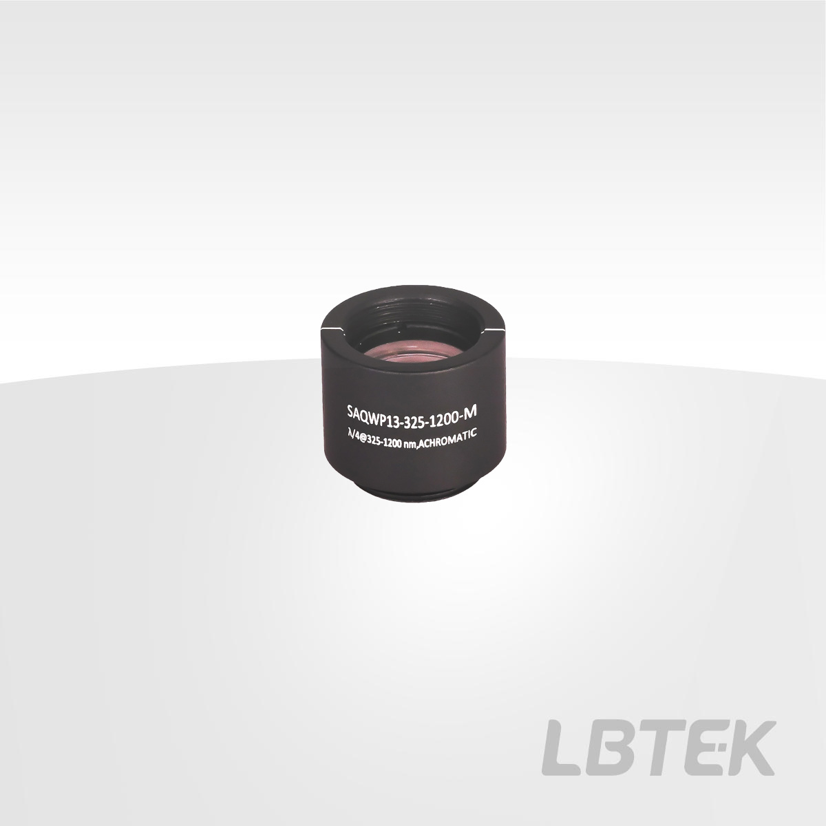 LBTEK's super achromatic quarter-wave plate with a clear aperture of Ø10 mm is composed of three quartz wave plates and three MgF2 wave plates bonded together. By controlling their relative angles, it achieves an ultra-broadband achromatic effect. Standard products are available with working wavelengths of 325-1200 nm and 600-2700 nm, both mounted in standard SM05 lens tubes. The surface is engraved with product model, retardation, design wavelength, and fast axis direction for easy identification and use.
