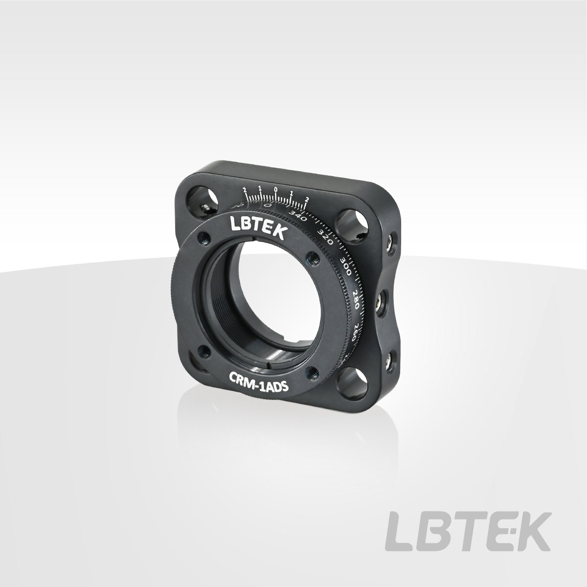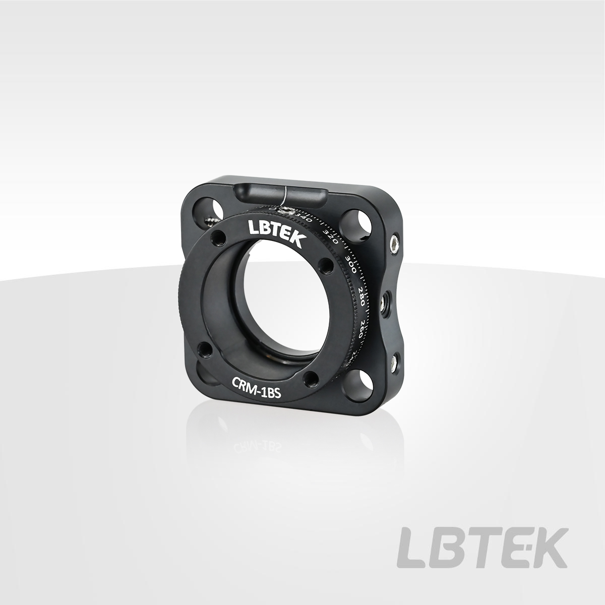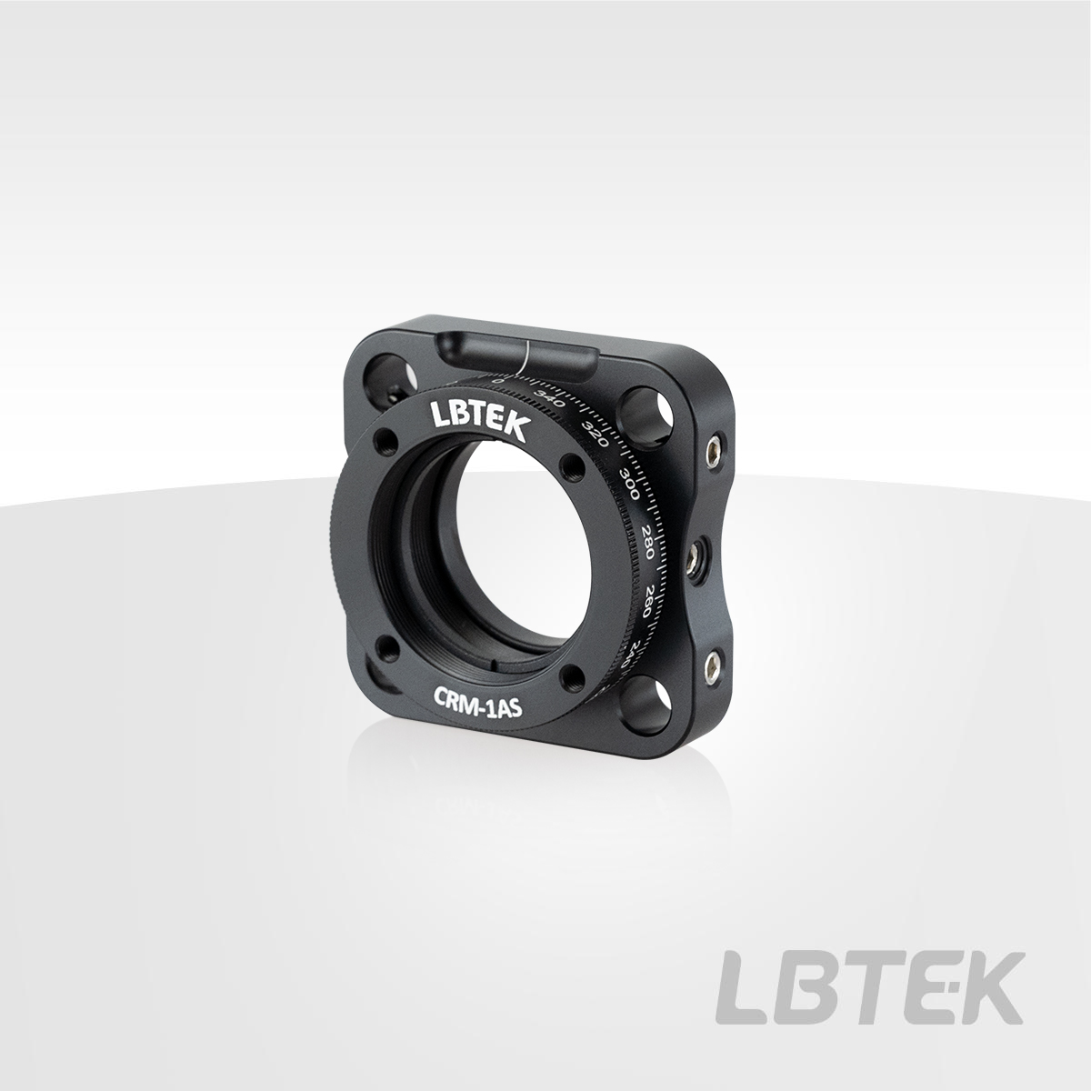 The LBTEK CPRM-1A adjustment mount is suitable for installing optical components with a diameter of Ø25.4 mm and a maximum thickness of 9.4 mm, securing the optical component with a single SM1R retaining ring. It allows for 360° rotation, with markings every 20°, and the differential scale provides a resolution of 5' (0.08°). The side features a coarse adjustment locking screw. When the coarse adjustment is locked, the rotation mount position can be finely adjusted within a range of ±7° using the micrometer head. Each full rotation of the micrometer head corresponds to a 1° rotation of the mount, with an accuracy of 1.2' (0.02°). The CPRM-1A has an M4 threaded hole at the bottom for connecting to optical posts.