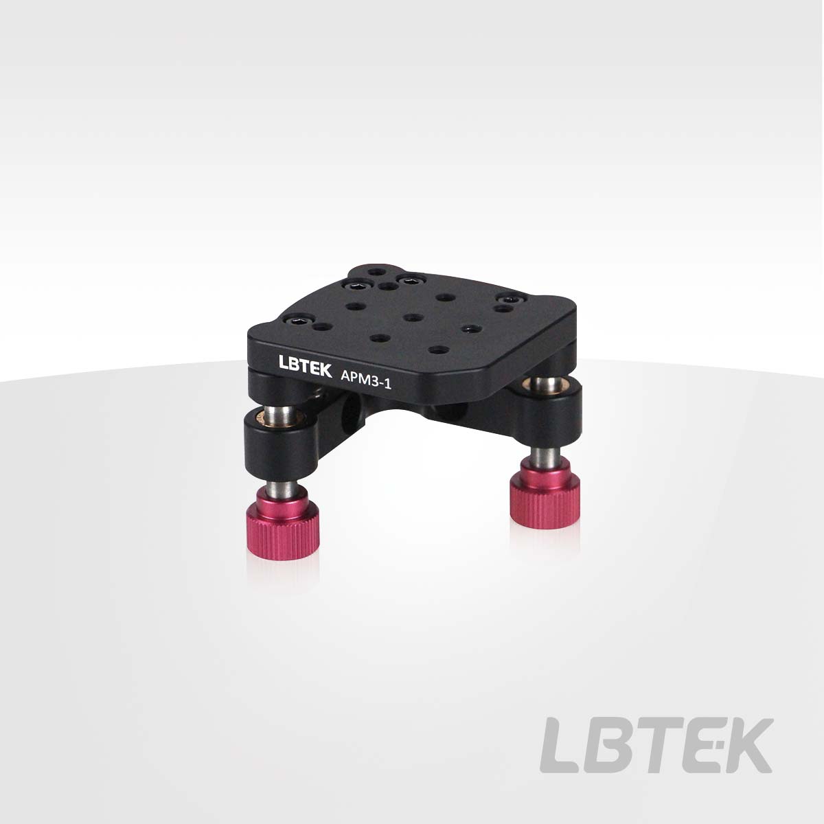 The LBTEK 2D Adjustable Mounting Platform is suitable for mounting optical components such as prisms and cubes. It comes with 2 adjusters and features a tabletop size of 49 mm × 49 mm. The included adjustable clamping arm CA-1 (available for separate purchase) can clamp optical components with a maximum height of 26mm.