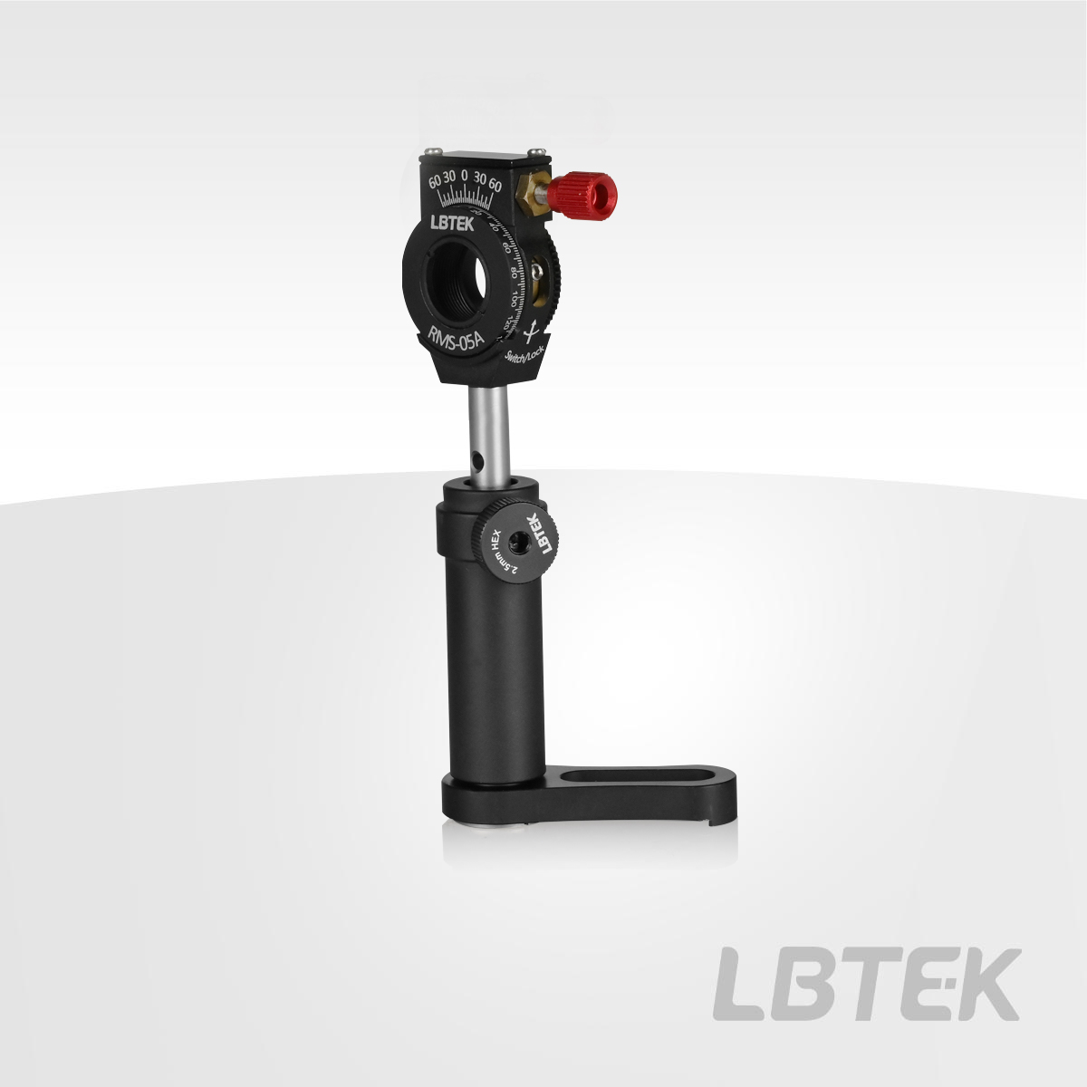 The LBTEK CMRM05S Free-Space Rotation Mount is designed for mounting Ø12.7 mm anisotropic optical components, featuring 360° rotation with 2° scale accuracy and numerical markings every 20°. It includes a side locking screw to secure the rotating body and an M4 threaded hole at the base for connecting to optical posts.