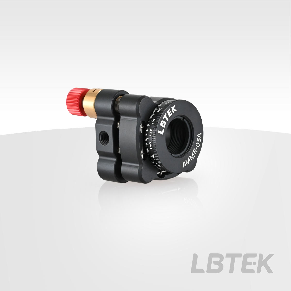 The LBTEK Optical Precision Rotation Mount features an SM05 tapped hole at its center, allowing the installation of optical components with a diameter of Ø12.7 mm and a maximum thickness of 7.2 mm using the included SM05R retaining ring. Additionally, an SM05 lens tube can be threaded into the mount to secure thicker optical components. The mount is equipped with two M5X025-25KL precision adjustment screw pairs, each featuring an M3 locking screw in the threaded bushing. These locking screws can be secured using a 1.5 mm hex wrench. The rotation of the mount can be fixed using an M4 locking screw, which can be tightened or loosened with a 2.0 mm hex wrench.