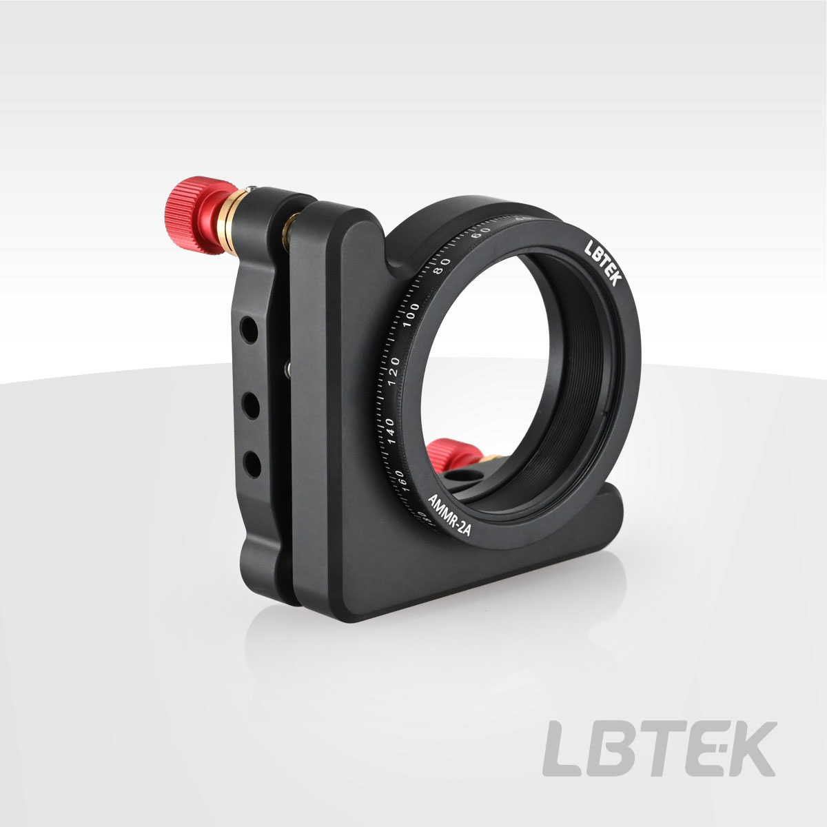 The LBTEK Optical Rotation Mount is commonly used in requiring control over the angular position and rotation of optical components. It features a central SM2 tapped hole for mounting Ø25.4 mm diameter optical elements (up to 9.4 mm thickness) using the included SM2R retaining ring. Additionally, an SM1 lens tube can be threaded into the mount to secure thicker optical components. The mount is equipped with three M6 precision adjustment screws. On the sidewall where the screws are installed, there is an M4 locking screw that can be tightened or loosened using a 2.0 mm hex wrench to secure the adjustment screws. The 360° rotation of the mount can also be independently locked using an M4 locking screw, which can be adjusted with a 2.0 mm hex wrench. Purchasing the LBTEK Optical Rotation Mount includes one 2.0 mm hex wrench.