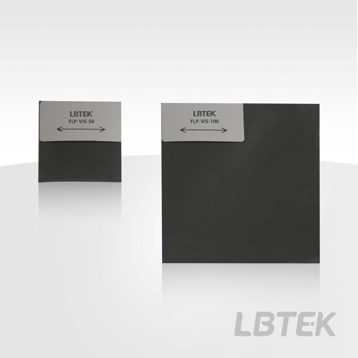 The LBTEK Square Thin Film Polarizers are available in two models: FLP-VIS-50/FLP-VIS-100, with dimensions of 50×50 mm or 100×100 mm respectively, and an operating wavelength range of 400–700 nm. Both sides of the thin film polarizer are coated with protective films, which are marked with the polarization direction. The protective films can be peeled off as needed when in use. The thin film polarizer can transmit and absorb the polarized light within specific wavelength ranges, making it suitable for low-power applications and capable of achieving ultra-high extinction ratios.