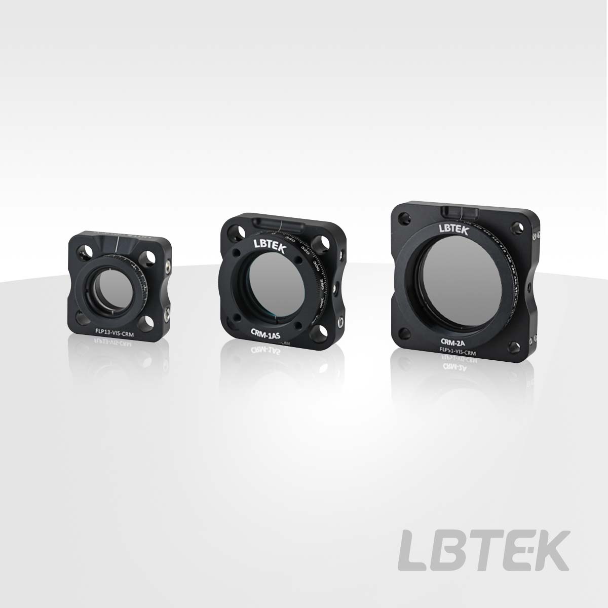 The thin film linear polarizers with an operating wavelength range of 400-700 nm have anti-reflection coatings on both air-contact surfaces of the two substrates for the corresponding wavelength bands. The polarizers with retaining ring mounts are installed in rotation mirror mounts CRM-05AS, CRM-1AS, and CRM-2A, with clear apertures of Ø10 mm, Ø21.5 mm, and Ø45 mm, respectively. These thin film linear polarizers are suitable for low-power applications and exhibit high extinction ratios when used to generate the linearly polarized light, with a wide incidence angle range of ±20°. The transmission axes of all three products are aligned to the 0° marking line and secured with adhesive for convenient use by customers.