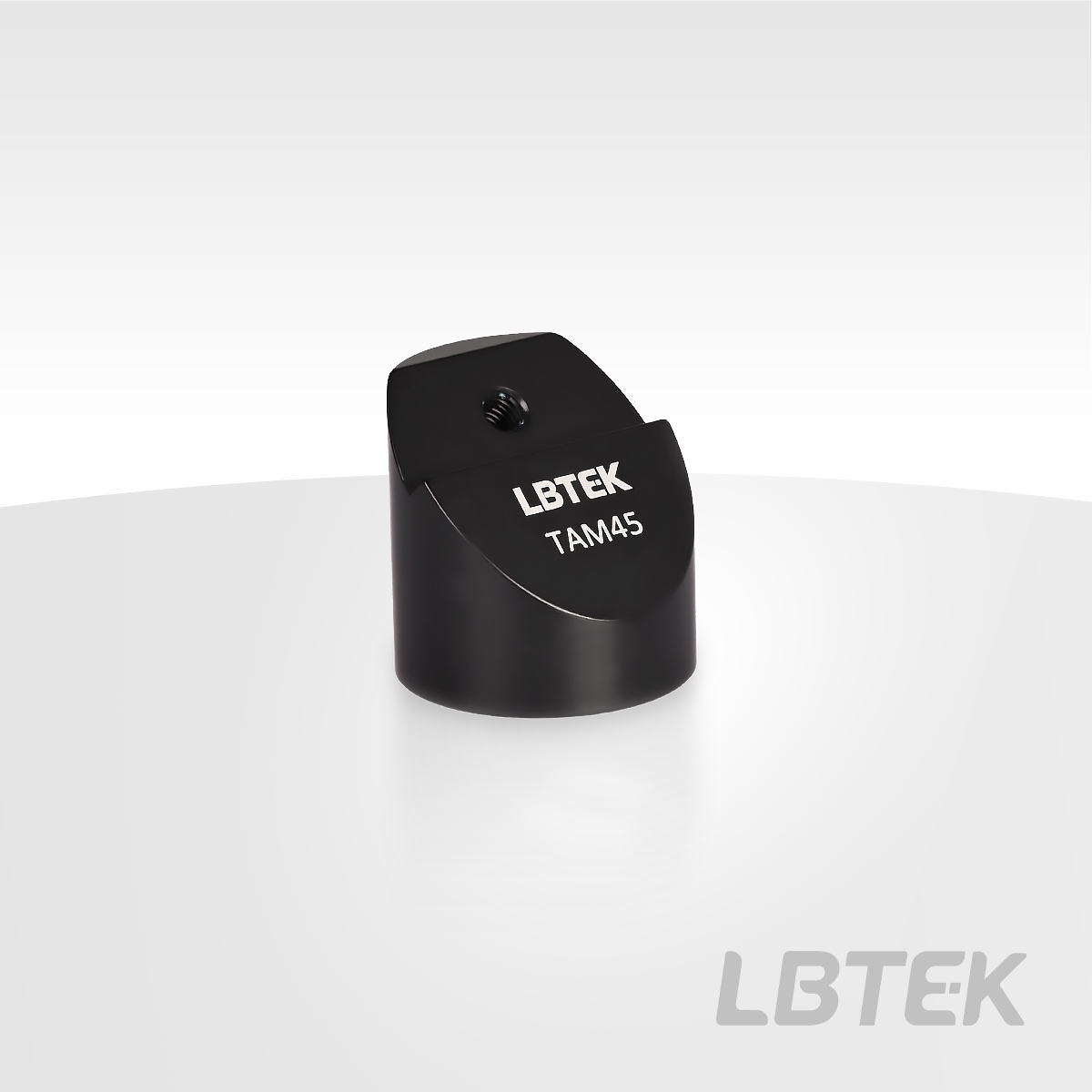 The 45° mounting adapter (dimensions Ø25.0 mm × 25.3 mm) from LBTEK is constructed from black anodized aluminum alloy, featuring an M4 tapped hole on its 45° angled surface for direct fixation of AMM series mounts using cap screws. When the AMM-1X is installed on the TAM45 with the UBPH universal rotation base, the beam height at the center of the AMM-1X lens is 56 mm from the operating stage. If the AMM-2X assembly is used, the beam height becomes 68 mm. (Note: Not recommended for use with AMM-05X as the screw assembly will interfere with the inclined surface.) The bottom of the adapter has an M6 tapped hole for mounting Ø25.0 mm posts or post holder bases. The purchase of LBTEK 45° mounting adapter comes with one M6 socket head cap screw and one M4 socket head cap screw.