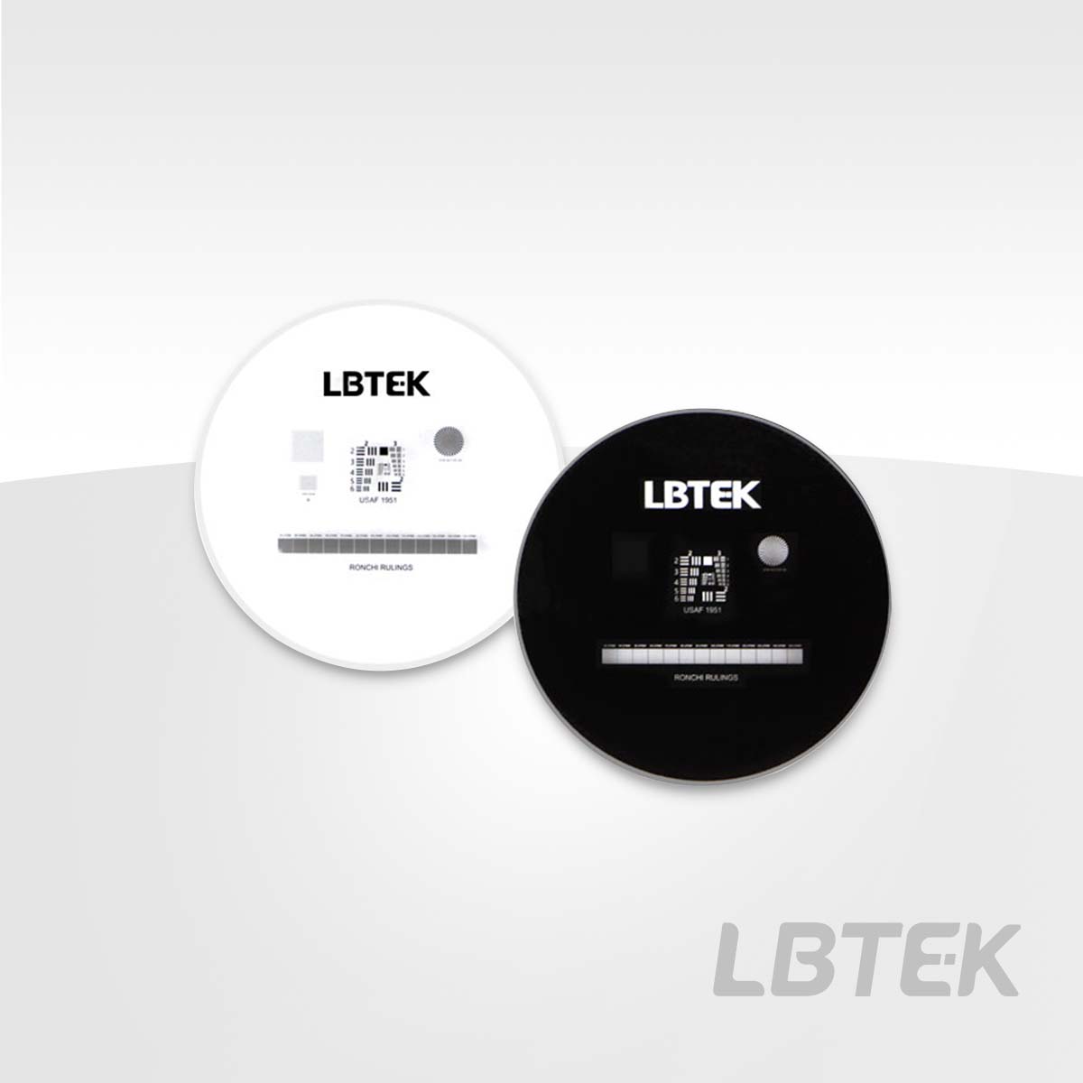 LBTEK's concentric circle and crosshair grid target consists of 289 independent grids arranged in 17 rows and 17 columns, with the 289 grids uniformly distributed within a central 50.8×50.8 mm area. Each grid is composed of four concentric circle patterns of different sizes and five crosshair patterns, with each concentric circle pattern featuring seven different radii, and each crosshair pattern containing one or two crosses. The LBTEK concentric circle and crosshair grid target can be used to measure system resolution, distortion, and magnification. The resolution test target includes both positive (bright field) and negative (dark field) resolution test targets. The positive resolution test target is created by depositing chromium on a soda-lime glass substrate, allowing light to pass through the non-patterned areas. The negative resolution test target, on the other hand, is made by depositing chromium on the substrate to allow light transmission through the patterned areas. For other customization requirements, please contact technical support.
