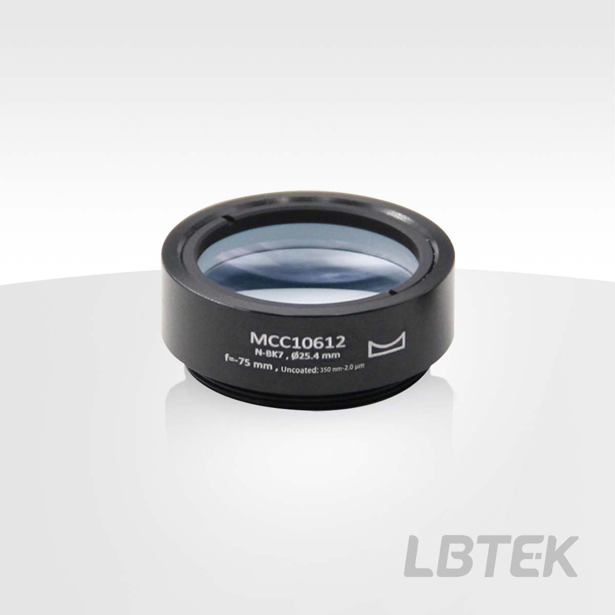 LBTEK Plano-Concave Lenses have a negative focal length and are commonly used in applications such as imaging or beam collimation. LBTEK plano-concave lenses are manufactured using N-BK7 glass that complies with RoHS standards. N-BK7 is the most commonly used material for high-quality optical components, primarily applied in visible and near-infrared fields. All circular lenses from LBTEK come pre-installed with standard lens tubes or lens mounting adapters. These mechanical components are engraved with product model, type, diameter, and focal length for easy identification of lens parameters by users.