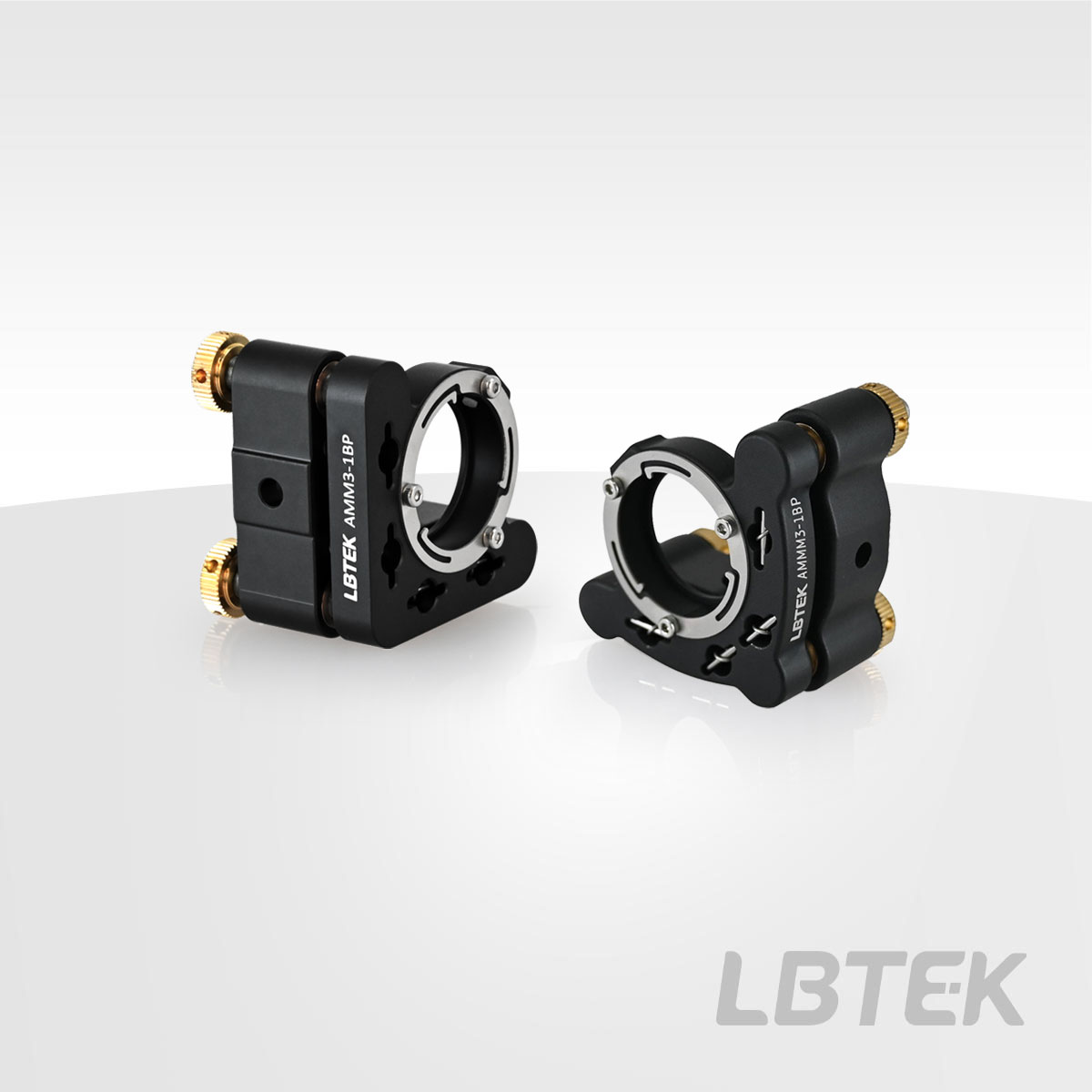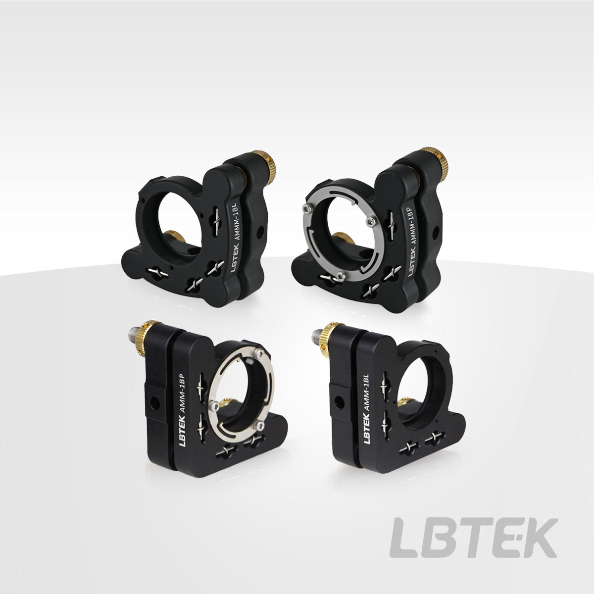 The LBTEK Standard 2-Axis O-Type Optical Mount is for optical components with a diameter of Ø25.4 mm and an optical axis height of 25.4 mm. The base of the mount features counterbore holes for M4 screws for connection and installation. The AMM-1BL model uses set screws to secure optical components and can accommodate a minimum thickness of 3 mm. The AMM-1BP model employs a dual clamping mechanism with set screws and an elastic retaining ring to fix optical components. The set screws can secure components with a minimum thickness of 3 mm, while the dual clamping ring can hold components up to 6.5 mm thick. The mount is equipped with two M6×0.25 precision adjusters, which can be locked with locknuts, providing pitch and yaw adjustment ranges of ±4° with 0.4° per rotation. The adjusters do not come with knobs but can be adjusted using a 2.0 mm hex wrench or an HWS-2 hex wrench with a knob. Purchasing the LBTEK Standard O-Type Optical Mount includes one 2.0 mm hex wrench and two M4 cylindrical head hex screws. The AMMM-1BL and AMMM-1BP models have short processing cycles, meeting the mass production and rapid delivery requirements. They use two tension springs with wire diameters of 0.65 mm and 0.8 mm, respectively, ensuring better stability for the optical mount.