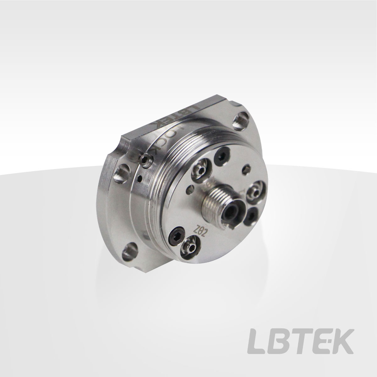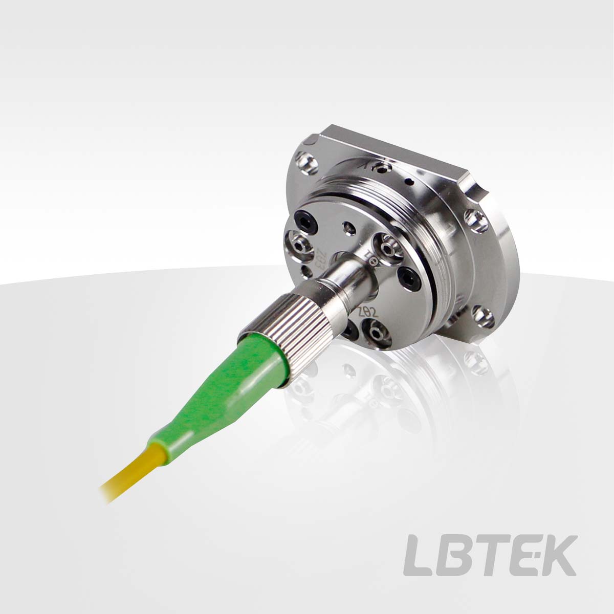 The LBTEK aspheric lens five-axis fiber coupler/collimator with a focal length of 7.5 mm offers three coating options (A/B/C), covering wavelengths from 350-1700 nm. While the connector and fiber remain stationary, the built-in lens provides five degrees of freedom for alignment: linear alignment in the X and Y directions, pitch and yaw angular alignment, and simultaneous adjustment of the Z-axis using pitch and yaw. The aspheric lens has a travel range of ±0.7 mm in the X and Y directions, with a resolution of 317 µm per revolution. The Z-direction travel range is ±1.0 mm, with a resolution of 200 µm per revolution. Additionally, loosening the three flat-head screws on the front panel allows rotation of the connector for polarization-maintaining fiber alignment. After alignment, tighten the locking screws on the side of the housing to secure the X and Y positions. The lock ring on the Zθ adjuster can fix the pitch/yaw position. Five-axis fiber couplers with FC/PC interfaces and an effective focal length ≤7.5 mm can be used with both FC/PC and FC/APC connectors, as the combination of five-axis adjustment and short focal length makes off-axis output negligible.