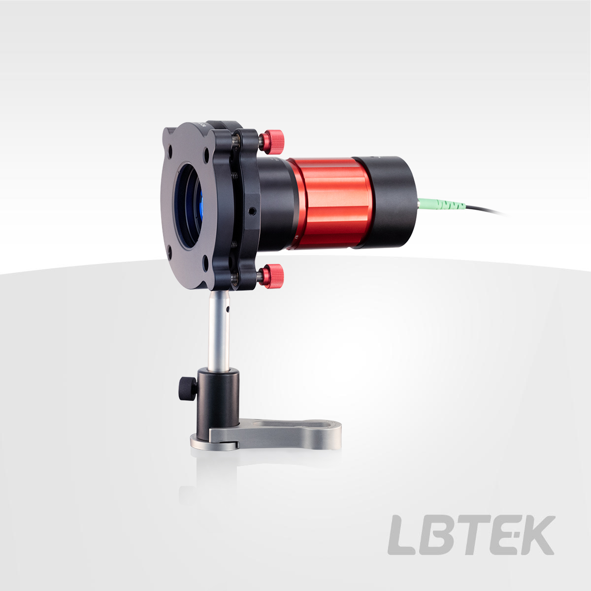 The 80mm EFL achromatic large-aperture fiber collimator is connected to the mounting rod via the AMC-2A coaxial system mirror mount.