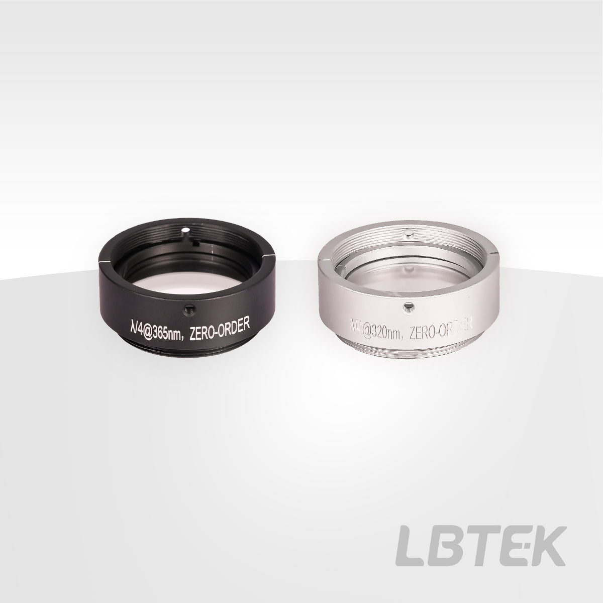 LBTEK Zero-Order Quarter-Wave Plates are temperature-insensitive and provide a retardation of λ/4, commonly used to convert linearly polarized light into circularly polarized light. When the polarization direction of linearly polarized light forms a 45° angle with the fast axis of the waveplate, the emergent light becomes circularly polarized light. All LBTEK waveplates are mounted in a black anodized aluminum ring, with fine lines engraved on the front and rear surfaces of the housing to indicate the fast-axis direction. The model number, specific retardation, and design wavelength are also engraved around the body.